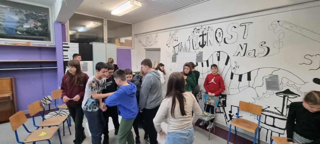 Na prve dvije radionice smo se, kroz grupne aktivnosti, upoznali s učenicima i uveli ih u temu emocija, prijateljstva i suradnje. Učili smo o tome kako emocije utječu na naše misli, tijelo i ponašanje te kako graditi dobre odnose i surađivati.